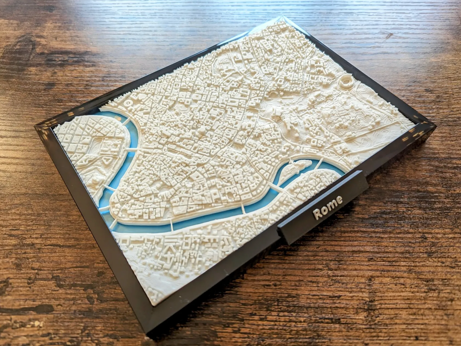 Step into the heart of ancient history with this beautifully crafted 3D-printed model of Rome. Featuring the city’s winding streets, iconic architecture, and the flowing Tiber River, this model captures the timeless charm and layered complexity of Italy’s Eternal City.